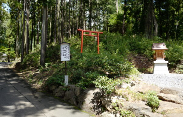 総門を過ぎて、参道を百メートルほど山門方面へと歩みますと、右側に山上へ通 じる細い山道が見られます。そこが『鳳仙寺鎮守三社』への参道です。